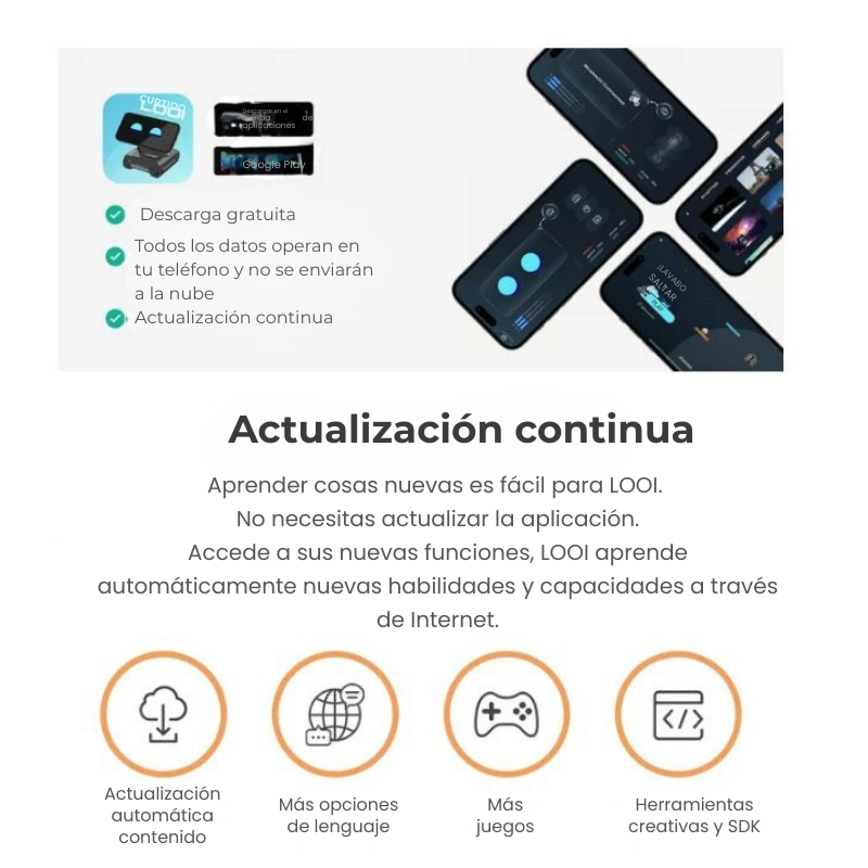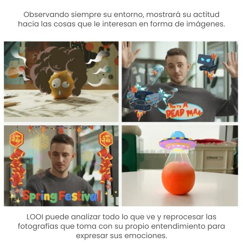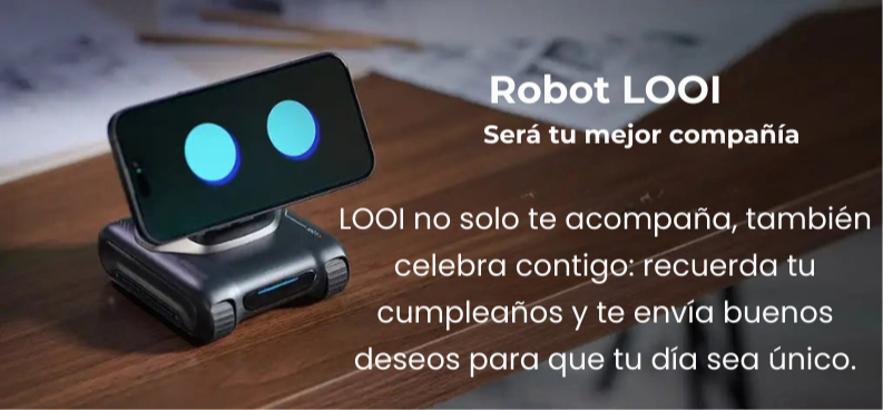 Looi convierte tu smartphone en un robot interactivo con IA: mantiene diálogos por voz (descarga la app y úsalo en español), usa reconocimiento visual para interpretar su entorno y se controla desde el móvil. Es un compañero ideal para aprender, crear contenido y demostrar tecnología de forma entretenida (recomendado 14+).