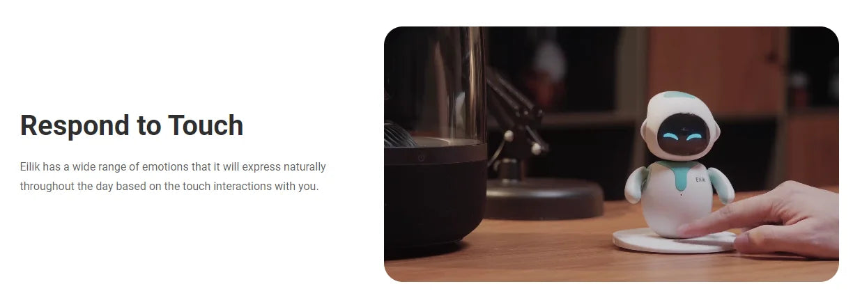 Eilik tiene una amplia gama de emociones que expresará de forma natural a lo largo del día según las interacciones táctiles contigo.